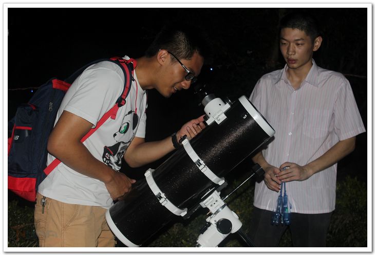 9月7号当天,一开始的活动是传统的望月习俗。慧园四栋楼下,蜡烛摆成的“8.15”形状,表示着农历中秋。烛光摇曳,灯影相辉,气氛浓烈。不同于以往的用肉眼观察,他们在现场布置了几台天文望远镜,给同学们使用。传统的中秋需要时尚的过法,而选择一个别具创意的方法赏月,似乎是将传统和现代拉近的最好方法。同学们很好的做到了这一点,天文望远镜不禁科普了天文知识,赚足了噱头,而且与传统习俗望月相结合,收到了意想不到的效果。学姐们的讲解也为活动加了不少分,学弟学妹们听得也是十分认真投入。讲解内容设计各个方面,包括天文知识,以及大家都比较感兴趣的星座讨论。