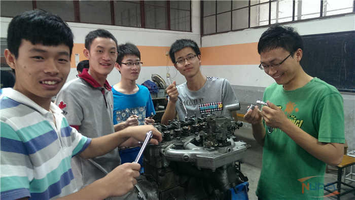 实习部分是在南汽技校,有技校专业技师指导同学们自己动手详细分解发动机与变数器,同时技师向同学们讲解各零部件的功能,拆装工艺,与其工作原理。同学们自己动手拆装的过程中既锻炼了体现工程素质的动手能力,又能增强学生们对汽车的兴趣,同时对汽车两大主要部件有了更直观的认识。