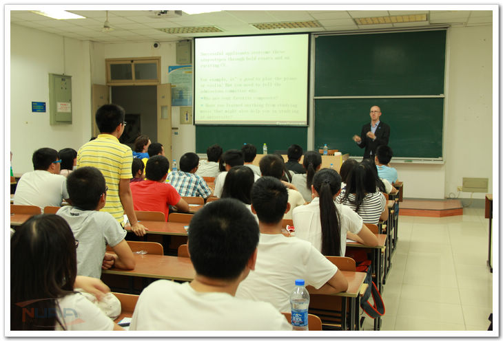 Evan老师从自己来中国登长城的故事引入,由浅入深,告诉同学们要勇于追逐自己的梦想。其个人魅力感染了在场同学,现场响起阵阵掌声。针对留学问题,Evan老师讲解了留学面试官最容易问到的三个问题,并列出国留学所需要准备的申请材料。为使同学们更加清楚了解留学所需要的能力,Evan老师举出三位不同类型的面试者,让在场同学们换位思考,以面试官的角度挑选最优者。他讲到,同学们要让自己更有竞争力,不单单是GPA高,更要全方位的能力。