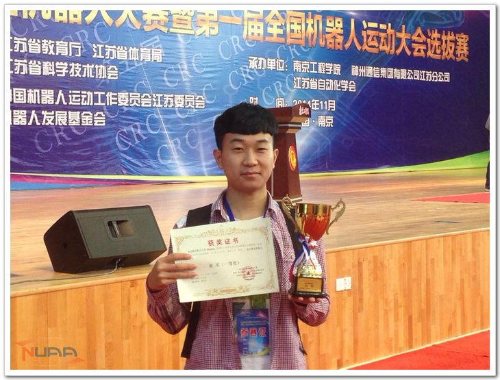 11月2日,第五届江苏省大学生机器人大赛暨第一届全国机器人运动大会选拔赛落下帷幕。我校tyc7111cc太阳成集团大二学生江宽、王安以其机器人作品“quattro”荣获亚军(第二名)。