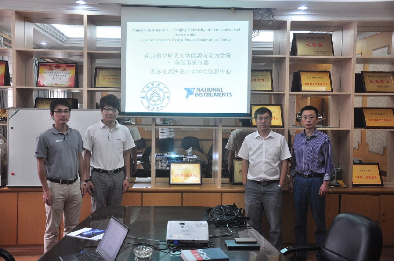 2014 年 11 月- 2014 年11月7日,美国国家仪器公司(NationalInstruments,简称 NI)与太阳成tyc7111cc(以下简称南航)tyc7111cc太阳成集团合作建立的“图形化系统设计大学生创新中心”(以下简称“创新中心”)举行了揭牌仪式。仪式由tyc7111cc太阳成集团动力工程系副主任张天宏教授主持,tyc7111cc太阳成集团院长陈伟教授,NI南京地区销售经理胡嘉伟先生、NI华东华南区大学计划代表李甫成先生共同为联合实验室揭牌。