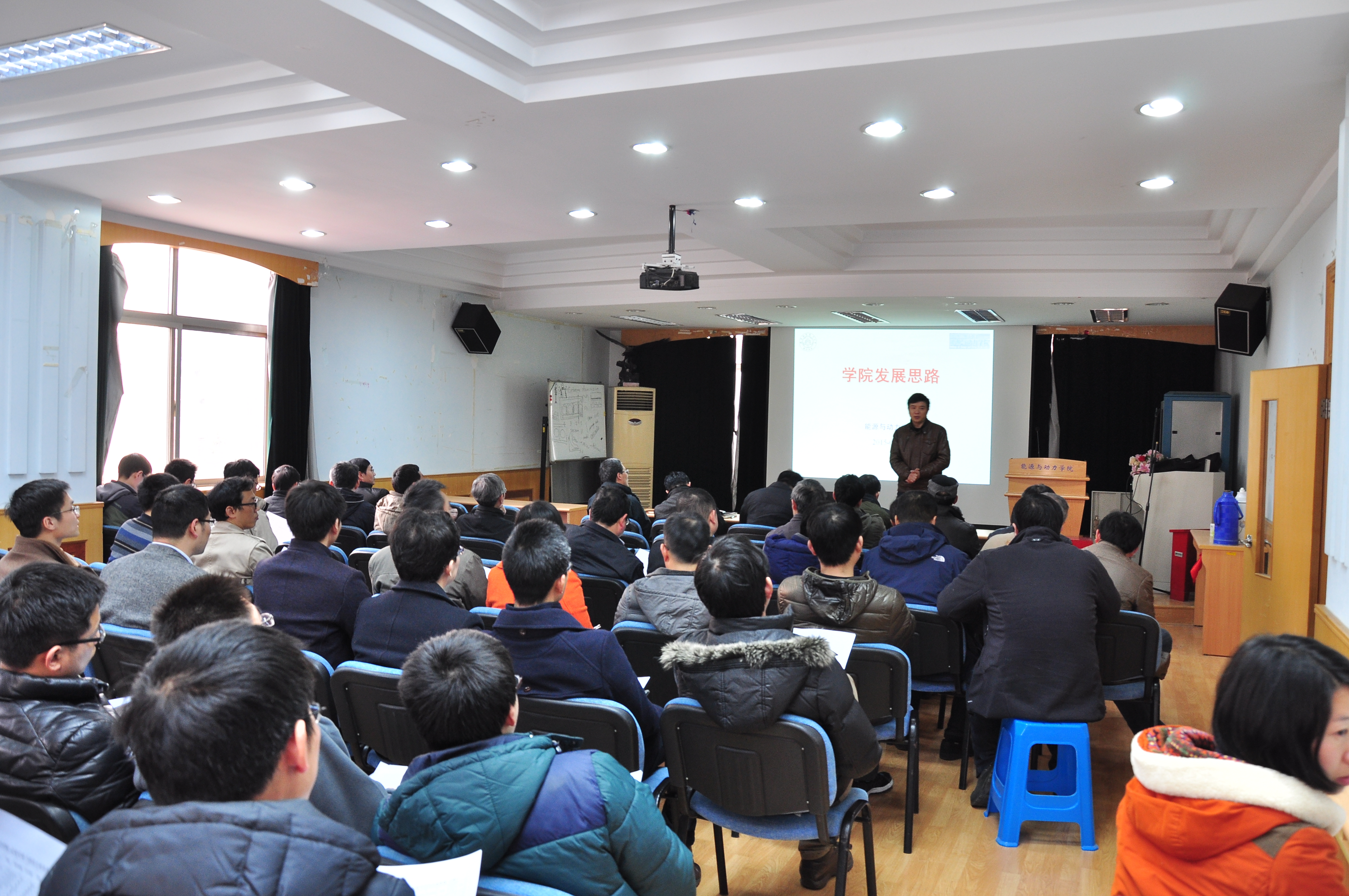会上,学院院长宋迎东代表学院向全体教职工分析了新形势下学院的发展思路。结合校综合改革的各项要求,对照学院当前发展过程中存在的问题和差距,宋迎东院长从教学、科研、管理、国际交流等多个方面阐述了学院的具体发展目标和2015年工作重点。宋迎东院长还指出,学院教职工应立足本职工作,对照标杆,剖析问题、认识自我,全面提升工作能力;学院应以校综合改革为契机,超前谋划,细致工作,全面提升学院实力。