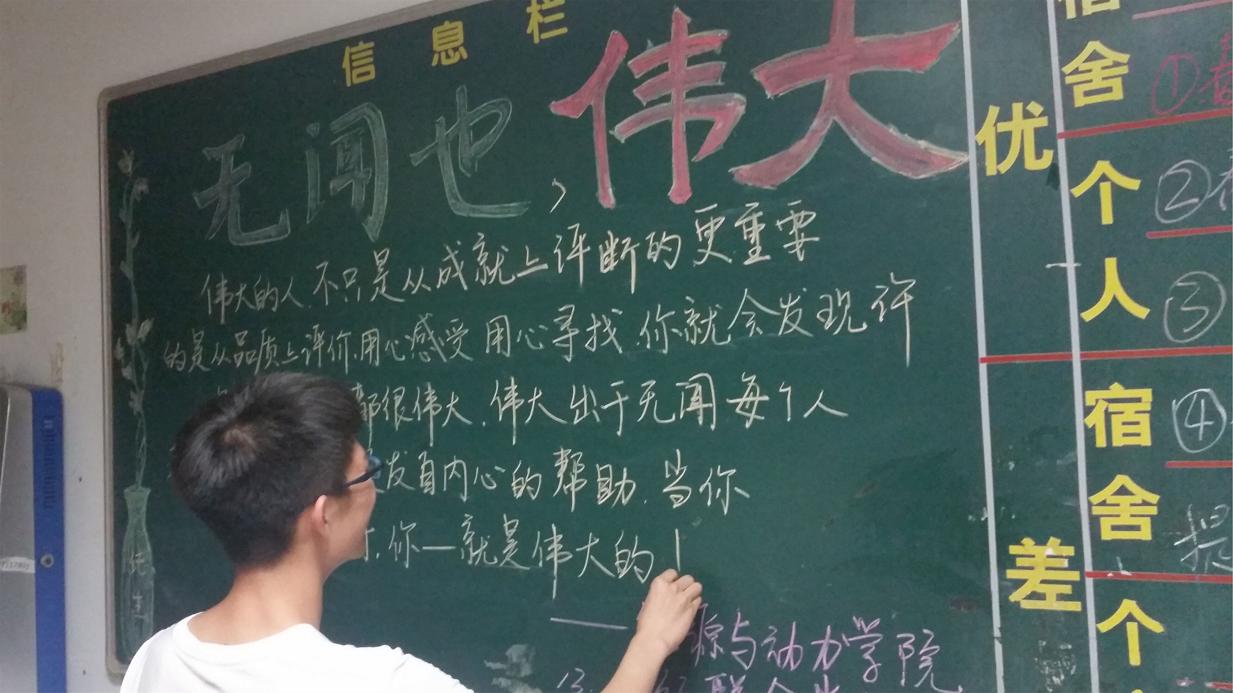 首先,党支部在慧园4栋绘制了“无闻也伟大”板报,号召大家都行动起来关注身边需要帮助的人,大家还帮助阿姨打扫了慧园四栋的一楼大厅,大家忙前忙后,却都乐在其中,因为大家体会到了劳动的快乐以及党员的价值。8月7日凌晨四点多,各位成员都早早的集合在一起准备帮助宿管阿姨清理垃圾,活动中大家争先恐后,虽然非常疲惫,但是当看到阿姨的笑了的时候便觉得一切都值得了。另外,在接下来的几天里,我们将自费为宿管阿姨送上我们自己的一点心意——一顶帽子,这虽不昂贵,但代表党支部成员对宿管阿姨们的感激和尊敬。