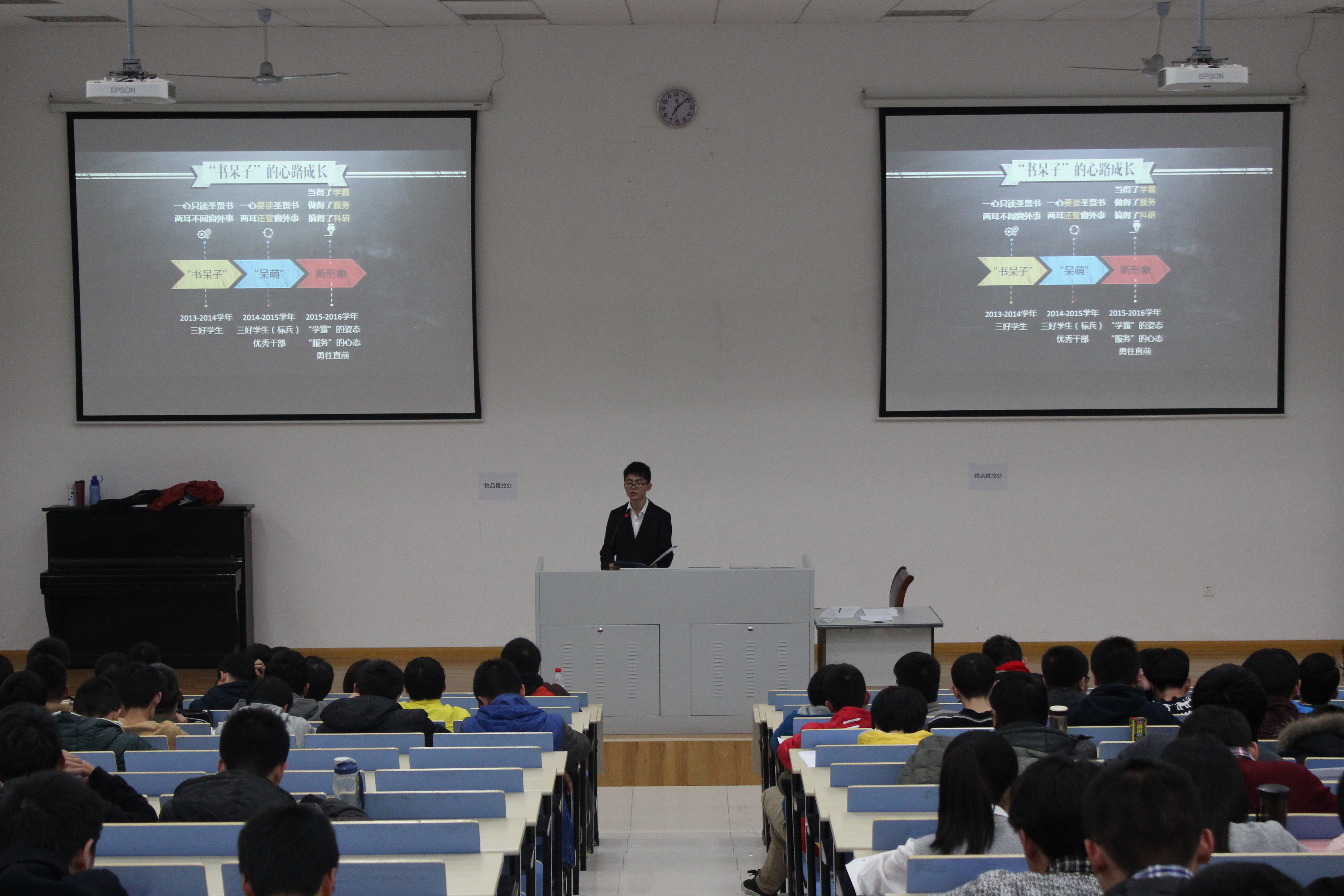 笃学篇是2013年级优秀学生代表分享自己的学习经验。年度特别嘉奖之笃学奖的获得者100班缪俊杰同学与园丁励志奖学金一等奖的获得者101班的卢阳天同学分别讲述了自己的精彩故事。缪俊杰同学优异的成绩与平日里的勤奋刻苦分不开,卢阳天同学更是通过的实际经历证明了这一点。他从濒临退学的境地蜕变为如今成绩优异的典范,这与他不服输、不认输、死磕到底的精神分不开。求是篇由102班江宽同学与201班方涛同学来主讲,他们分享了自己奔跑在创新、创业的道路上,他们求真务实、求是严谨的精神值得我们学习。奉献篇由获得我校学风引导类“优秀团队”荣誉的APU启航团来主讲。自APU启航团成立以来,陆续帮扶了近60名学困生。在他们的努力下,解决了很多同学学习上的困惑,缓解了学困生与家长之间的矛盾。另一主讲团队是我校第一批卓越班之0213109班,该班级追求卓越、后来居上的拼搏精神是很赞的,在今年的评优评奖中获得了校“标兵班级”的荣誉