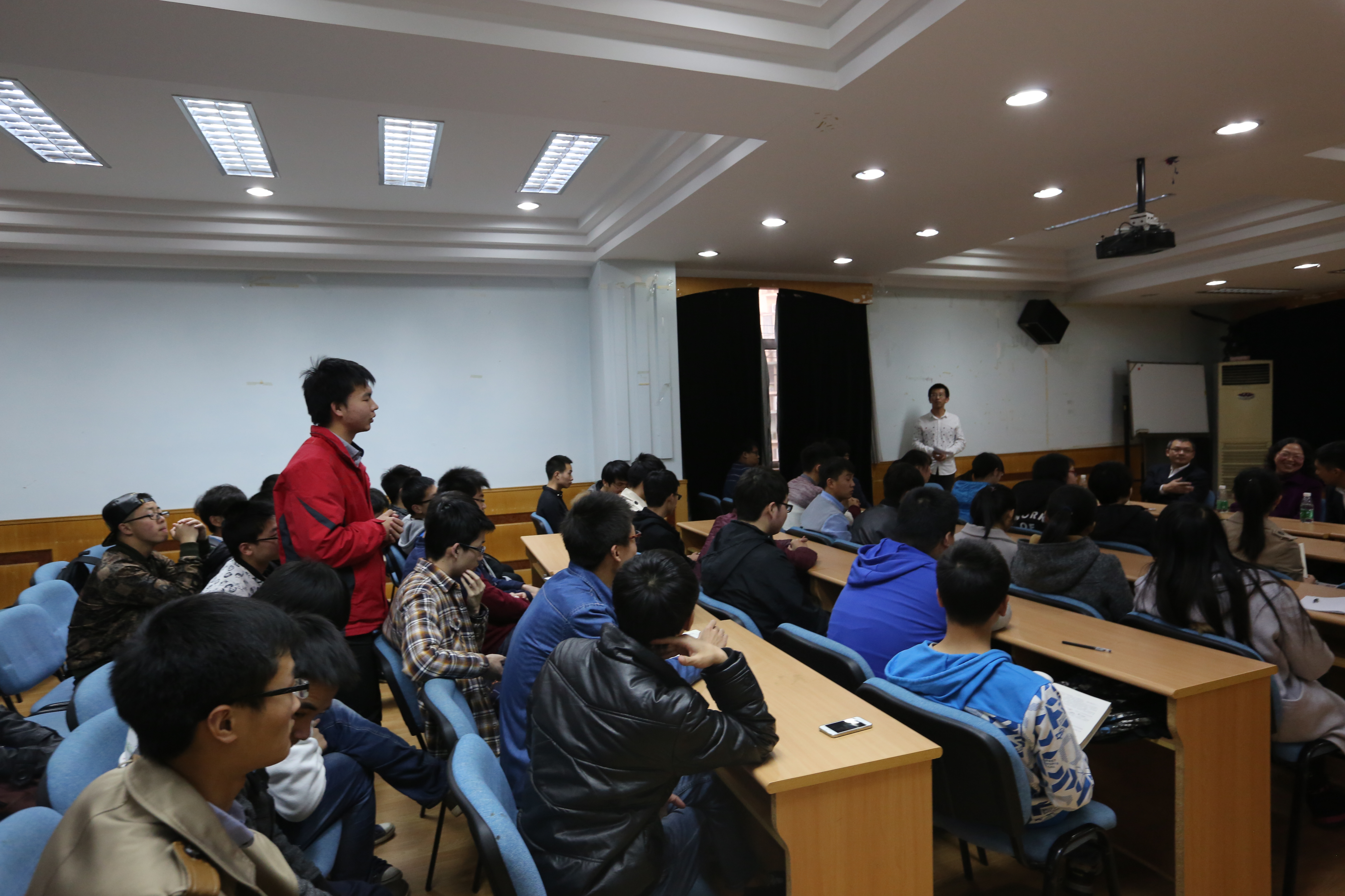 随后进入了交流环节,也是本次活动的主要环节。主持人首先向嘉宾提问了几个前期征集中高频率出现的问题,包括了简历写作技巧、薪酬水平、企业文化、工作环境等方面的问题。两位工厂的领导对这些困惑做了详细的解答,鼓励同学们利用在校剩余时间做好对意向就业单位的深刻了解,提前准备并不断充实自己,争取面试时的主动发言权。他们还回应了同学关于在面试中存在的由于行业特殊性导致的性别歧视问题,表示女同学在中广核集团同样有很大的发展空间,消除了女同学在就业方面的顾虑。徐川老师也根据自己的见闻全面分析了读研与就业两者中所存在的利弊,告诫我们不要盲目跟随大流,坚持自己的选择,遵循自己的发展目标,并坚持奋斗,为之做好准备。