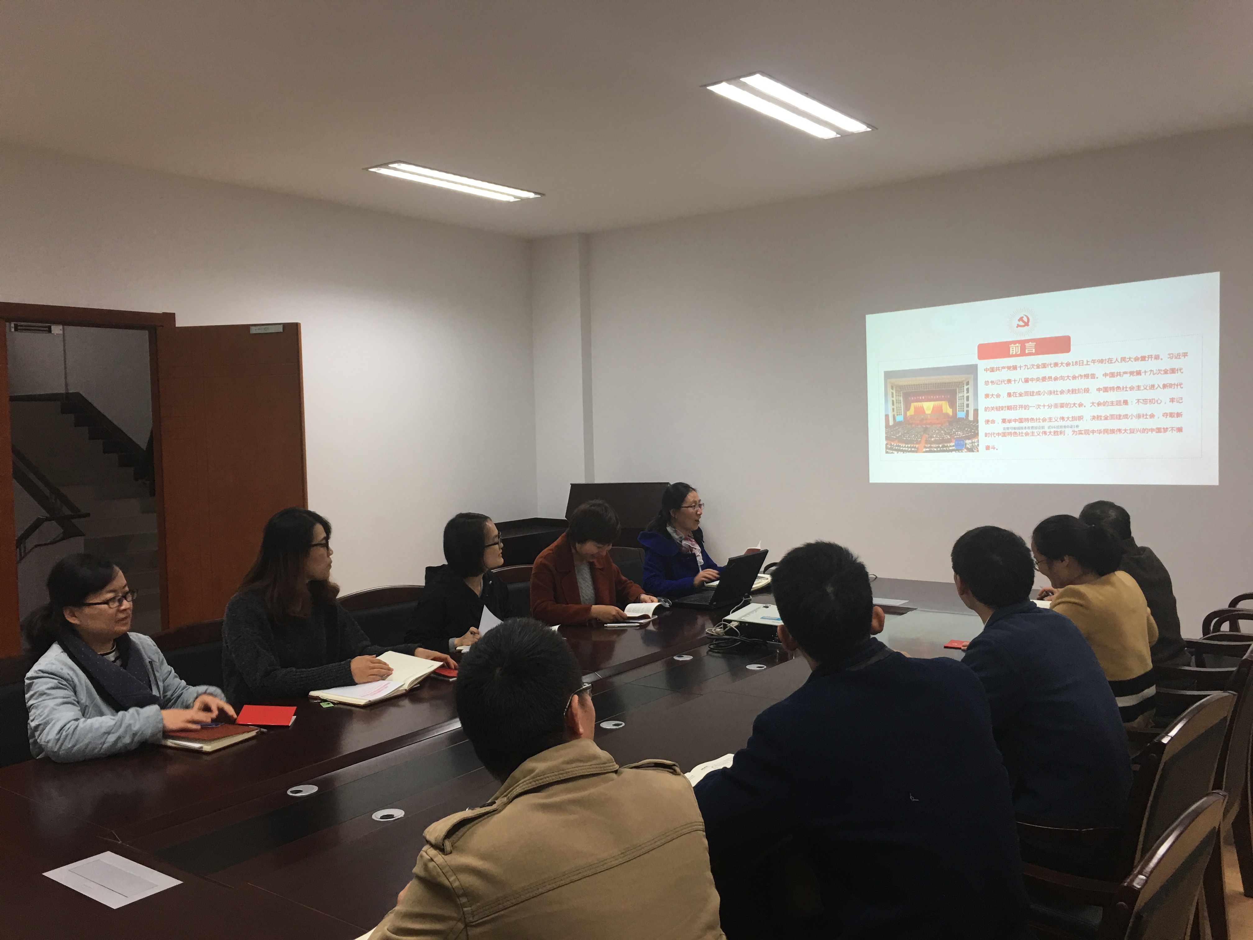 2017年11月13日,燃烧传热与热能系全体教工党员在10号楼400会议室召开了支部大会,集体学习了党的十九大会议精神。会议由燃烧传热与热能系党支部书记颜应文主持,全体教工党员参加了此次支部集中学习活动。