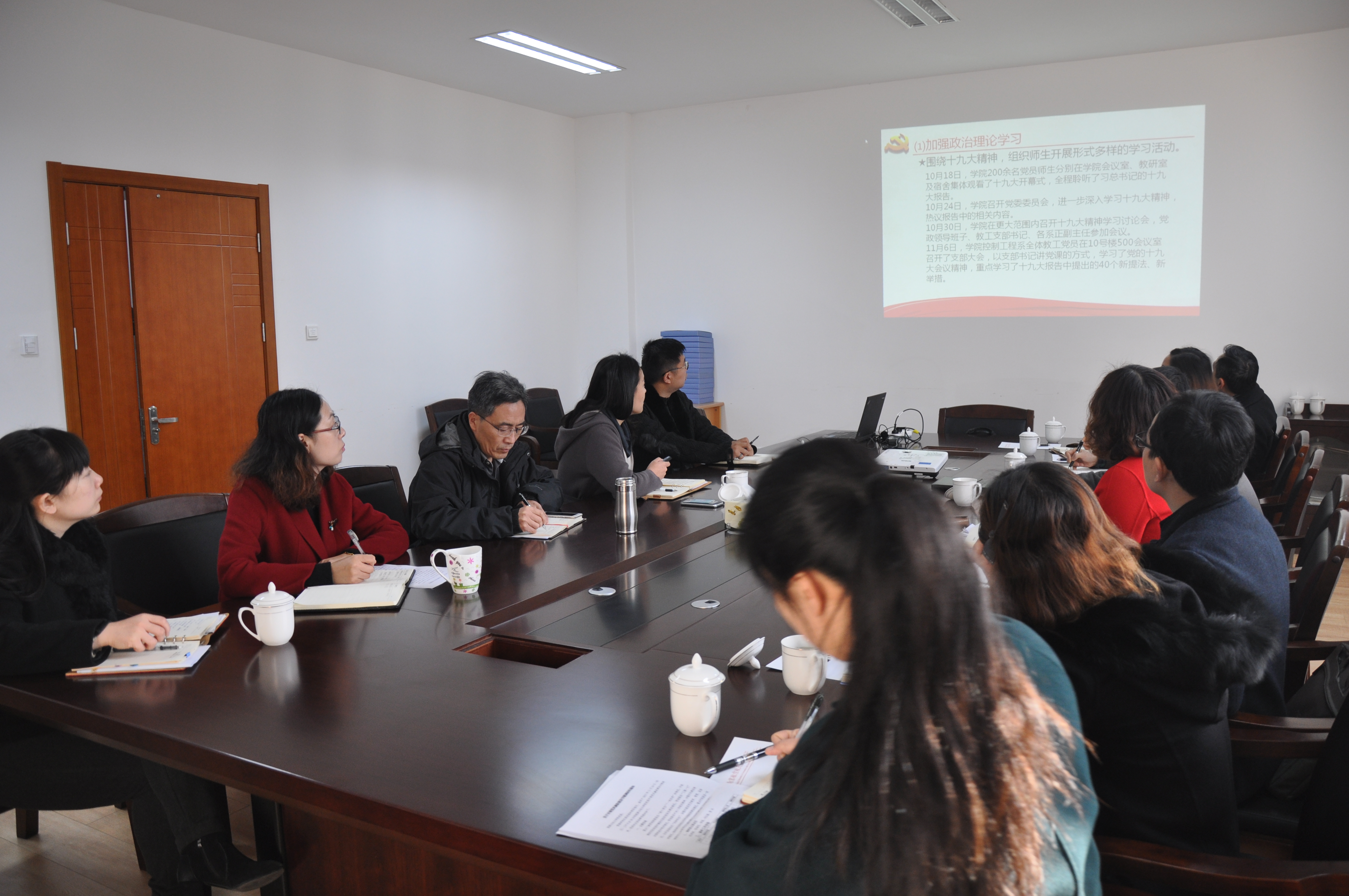 杭育新同志对我院思政教育和党风廉政建设工作表示高度的肯定和赞扬。他表示,学院领导班子调整后,新班子新气象,状态非常好,可以看出在思政教育和党风廉政建设方面动了很多脑筋,结合专业特色做出了很多亮点工作;下一步,在党中央全面从严治党的要求下、在建设“双一流”和“两机专项”的重大机遇下,希望学院党政班子形成共识,将党建、业务、管理、教育教学、学科建设等工作做得更好、“赶超一流”。