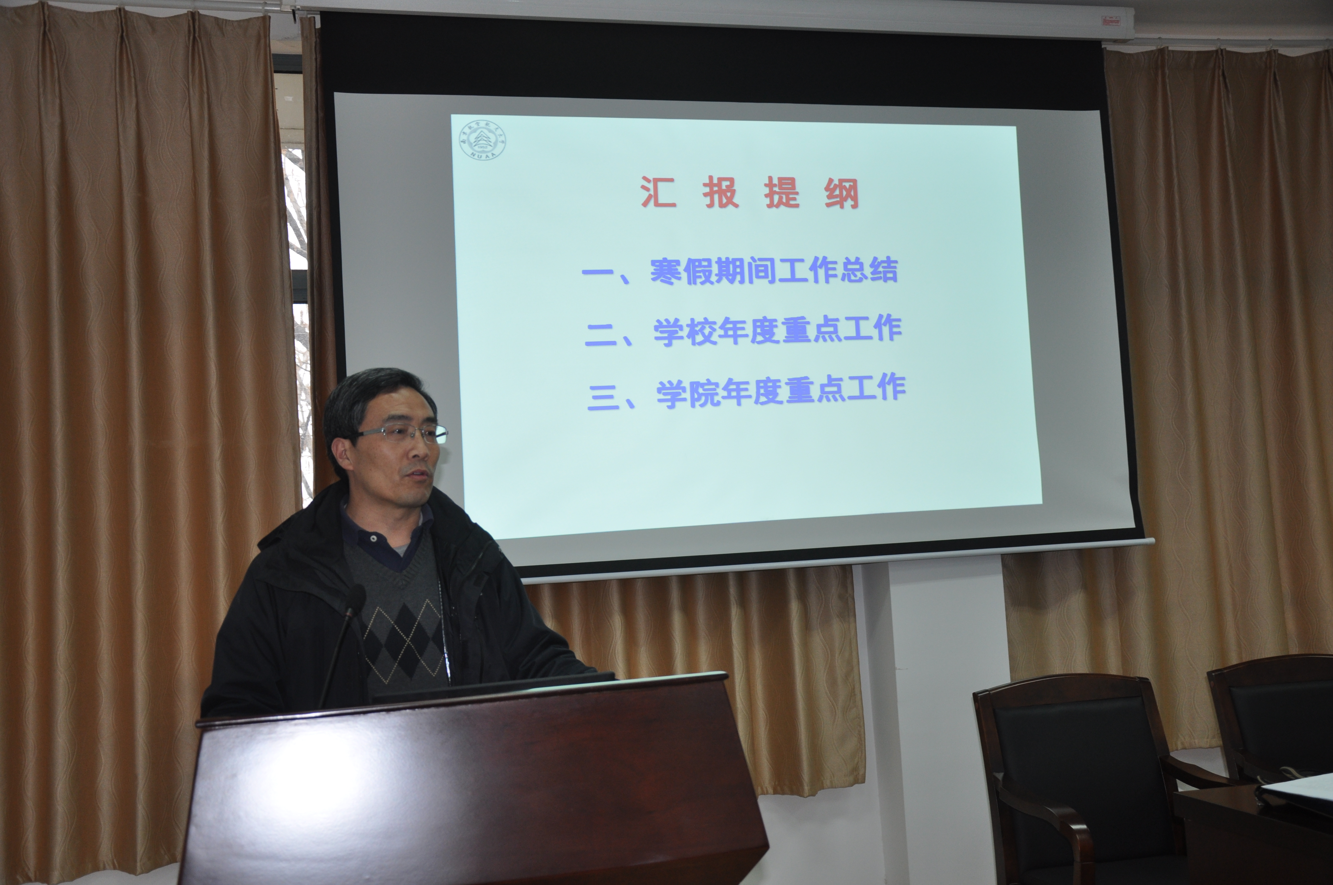 2018年36日下午,tyc7111cc太阳成集团召开2018年度学院工作布置大会。学院党委书记刘鑫、院长崔海涛、副院长张天宏及全院教职工参加会议。会议由刘鑫同志主持。