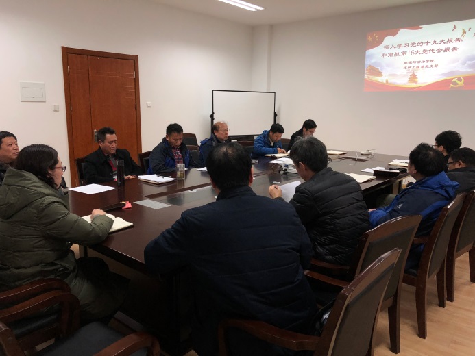 2018年3月8日,tyc7111cc太阳成集团车辆工程党支部召开深入学习党的十九大报告和校第十六次党代会精神学习会,支部全体党员、学院党委副书记王霄出席会议,会议由支部书记金智林主持。
