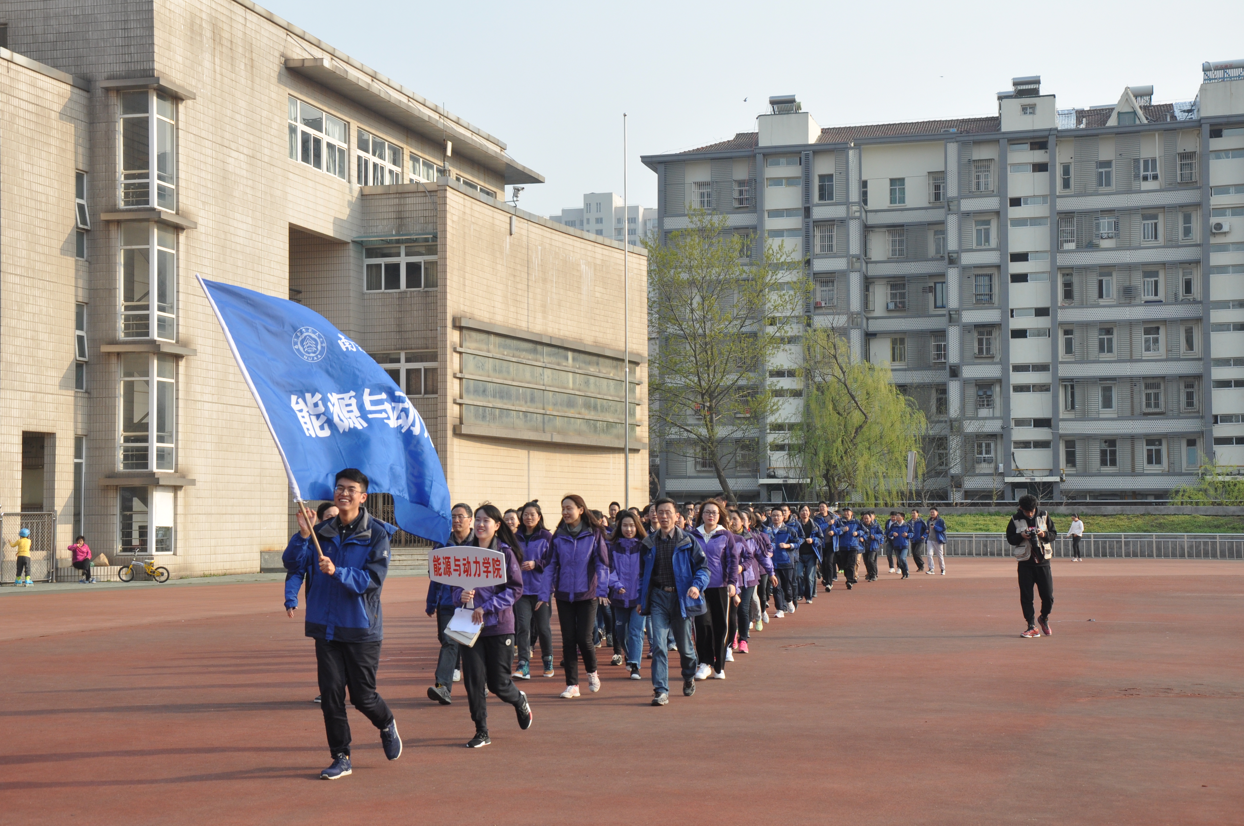 此次长跑,学院上下高度重视,前期积极组织动员,学院领导带头参与,院机关工作人员、全体辅导员、各系教职工包括近期退休的老师都积极参加,参与人数近百人。整个过程,大家精神饱满,步伐整齐,从明故宫校区田径场出发,北经十号楼,东至动力楼,全过程无一人掉队,最后在行政楼前合影留念。通过长跑,一方面在春暖花开的美丽校园中感受春的气息,为更好地投身教学科研打下基础;另一方面集体活动更加增加了学院凝聚力,一张张照片见证着学院的砥砺奋进,携手前行。