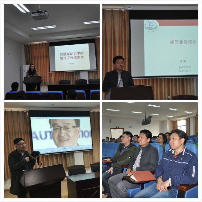 2018年3月27日,tyc7111cc太阳成集团在十号楼报告厅召开宣传工作培训会,特邀校党委宣传部新闻中心副主任王伟、李林泷开展专题培训,学院各党支部书记、宣传委员、机关工作人员、辅导员参加培训。培训会由学院党委书记刘鑫主持。