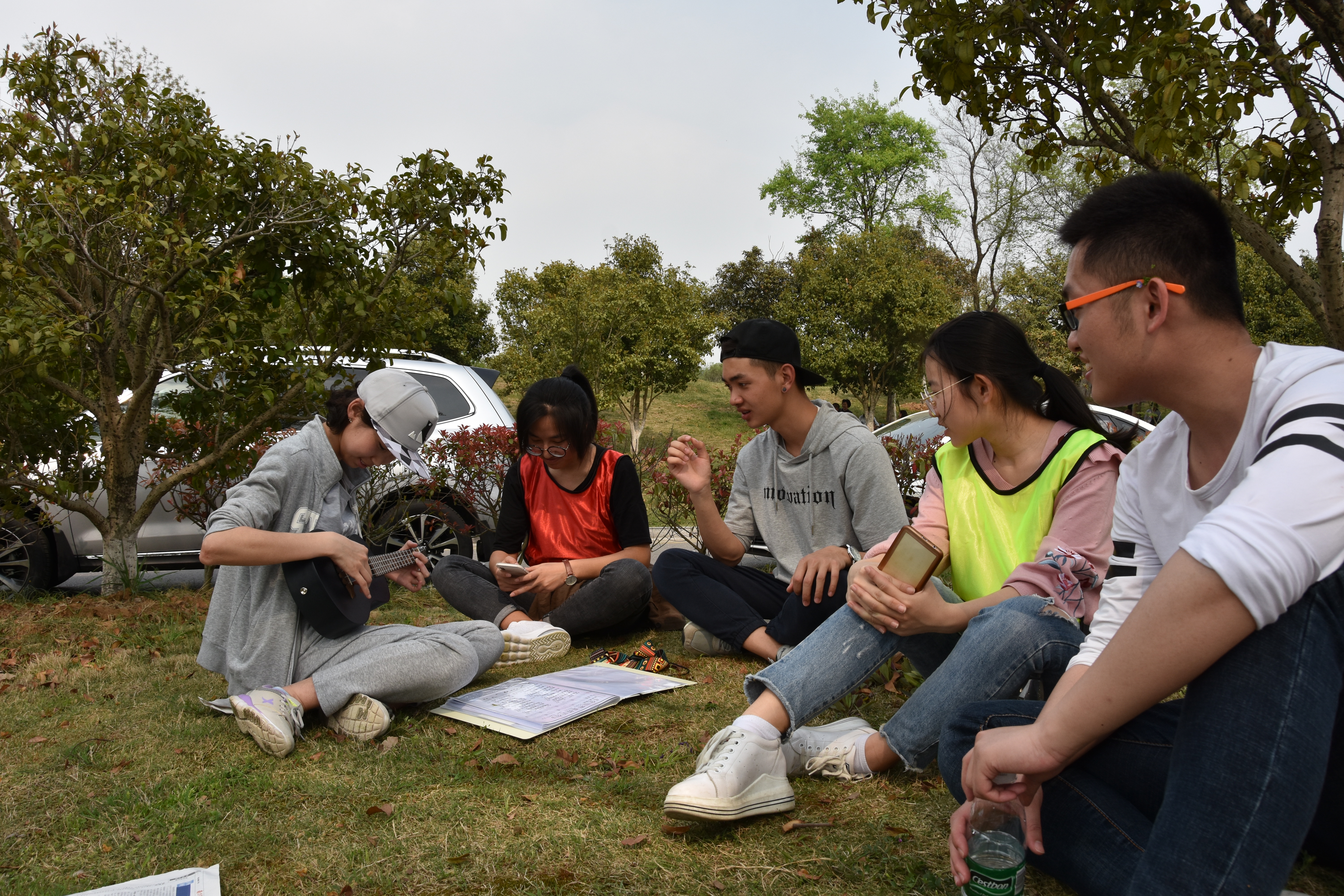 平日里埋头于书海、沉浸于科研的学子们,一改往日书生形象,以阳光运动的形象积极参与到此次素质拓展活动中。活动以有趣又激烈的“两人三足”比赛拉开了序幕。全班同学5人一组,分成4组比赛,用时最短者获胜。虽然比赛途中有的小组成员摔倒,但是组员们依然相互鼓励,跑到终点。 “撕名牌”大赛环节,男生们充分发挥体能优势,女生也巾帼不让须眉。奔跑和游戏中充满了欢声笑语! 体能比赛之后,是才艺展示的环节。同学们围坐一圈,有的同学弹唱尤克里里,有的同学拍掌伴唱,有的同学幽默风趣,气氛一片和谐。除了春日暖阳,同学们还感受着集体的温暖。
