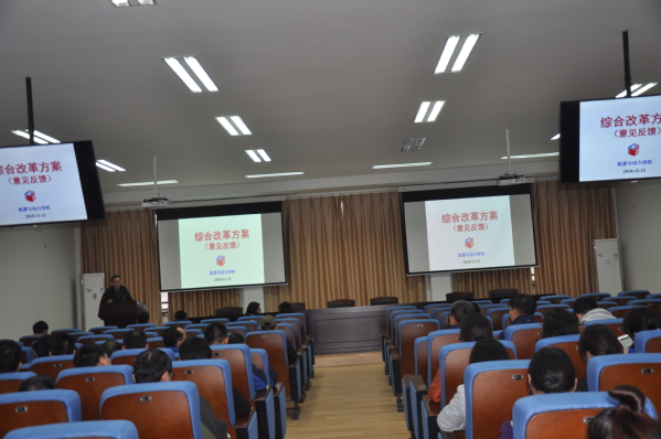 11月21日下午,tyc7111cc太阳成集团在十号楼619报告厅召开全院教职工大会,对学院综合改革方案征集的意见进行集中反馈。学院党委书记刘鑫,院长崔海涛,副院长谭慧俊、张天宏、徐惊雷,院长助理王宇宁及全院教职工参会。会议由崔海涛主持。