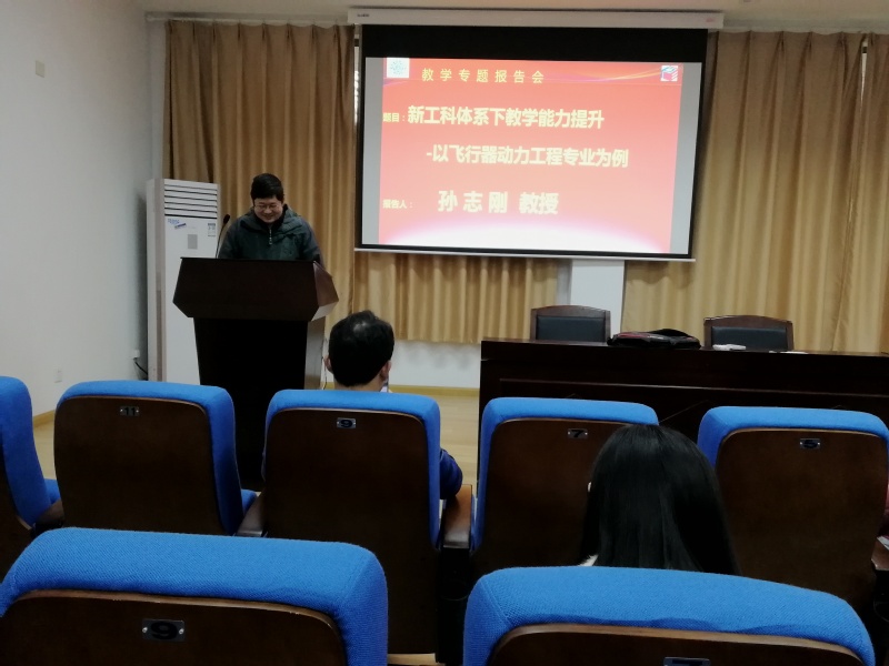 2018 年12月3日下午,tyc7111cc太阳成集团在10号楼619报告厅举办教学专题报告会。强度与振动工程系主任孙志刚教授以飞行器动力工程专业为例,给新教师及骨干教师做“新工科体系下教学能力提升”教学专题报告。