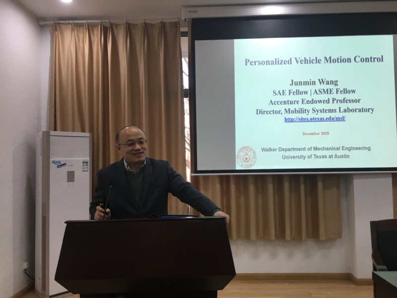 应车辆系主任赵万忠教授邀请,20181218日下午,美国德克萨斯大学奥斯汀分校的Junmin Wang教授在我院做了题为“Personalized Vehicle Motion control”的学术报告。报告在我院十号楼报告厅进行,由赵万忠主持,我院车辆系部分教师以及数十位硕博研究生和本科生参加了此次报告。