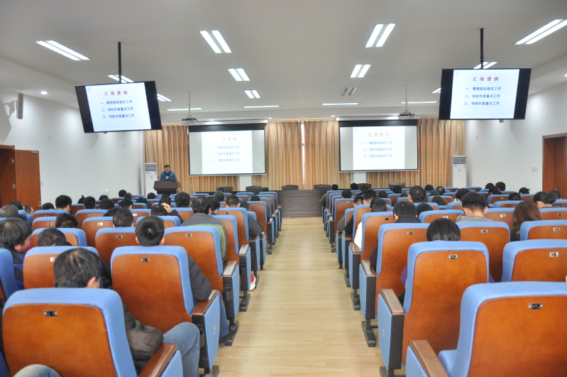 3月6日下午,tyc7111cc太阳成集团在十号楼619报告厅召开全体教职工大会,传达学校新学期干部教师大会和教育思想大讨论会议精神,做学院寒假工作总结与学期工作安排。学院院长崔海涛、院党委副书记王霄、副院长谭慧俊、徐惊雷、张天宏及学院全体教职工参加大会。会议由崔海涛主持。