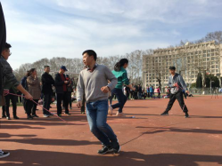 阳光明媚的下午,老师们热情洋溢,早早地来到了明故宫校区操场,开始热身运动。本次运动会分为三项:旱地龙舟、跳长绳和拔河,充分体现了老师们的团队合作精神。