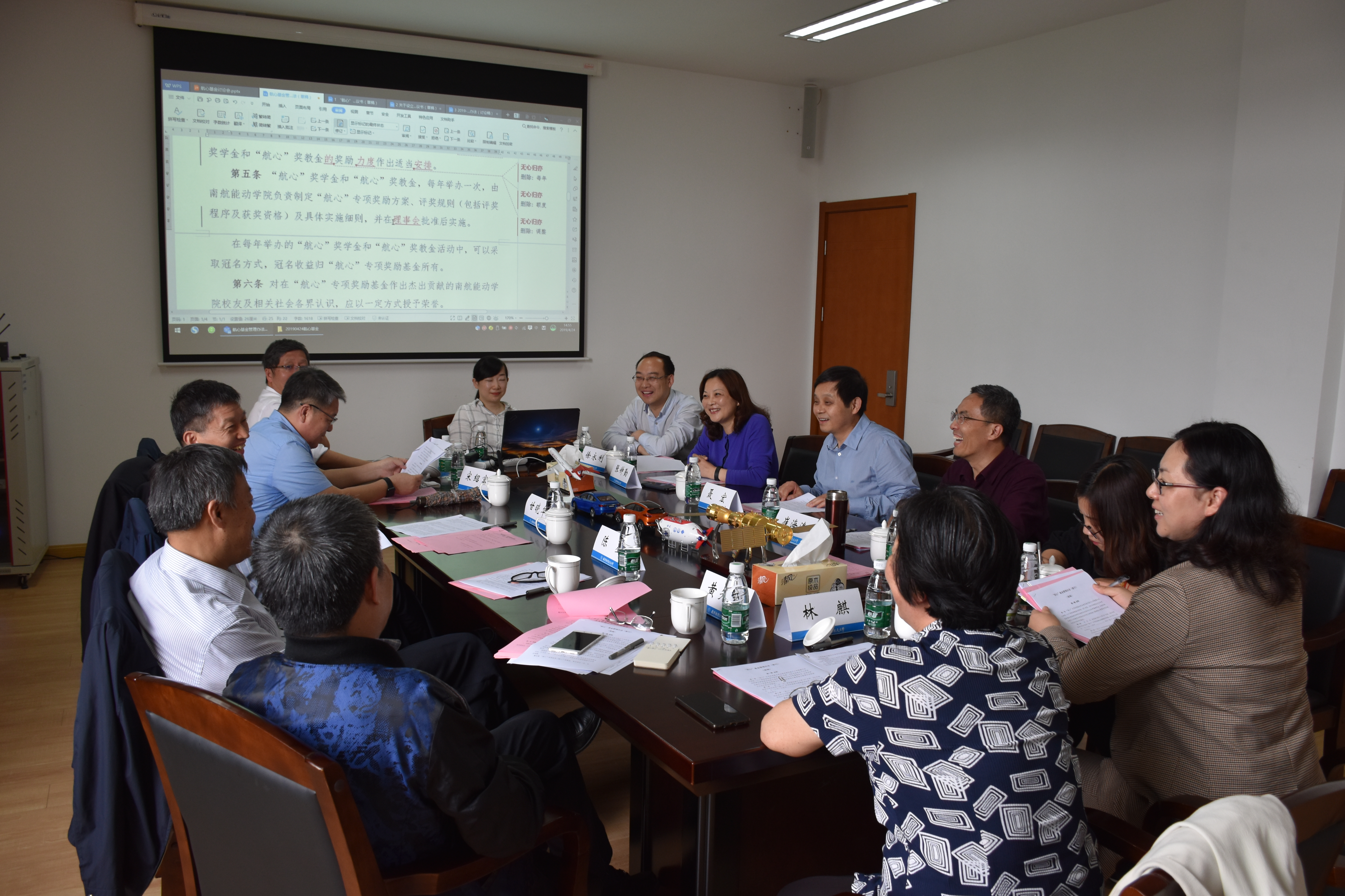 会议中,各位校友对《“航心”专项奖励基金管理办法(暂行)》、《“航心”专项奖励基金捐赠协议书(草稿)》、《关于设立“航心”专项奖励基金及其管理协议书(草稿)》三个文件进行讨论。并对《“航心”专项奖励基金管理办法(暂行)》讨论稿做出表决。“航心”专项奖励基金理事会成员以满票通过《办法》。