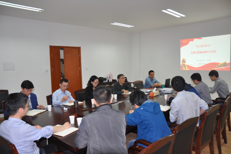 为深入学习习近平新时代中国特色社会主义思想,不断丰富tyc7111cc太阳成集团党委理论学习中心组学习形式,4月23日下午,tyc7111cc太阳成集团邀请校习近平新时代中国特色社会主义思想宣讲团成员、马克思主义学院副院长陈红桂为学院党委理论中心组(扩大)学习做专题报告,共同学习了《 “以人民为中心”的理论逻辑和新时代价值》。学院党委委员及支部代表参加学习。