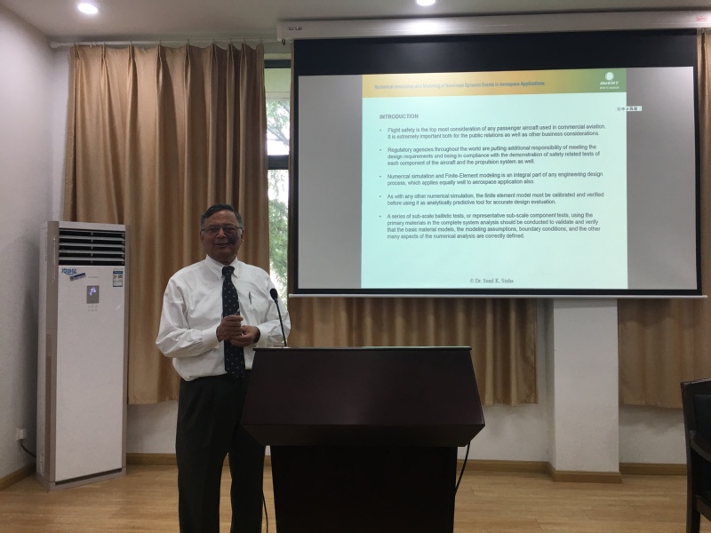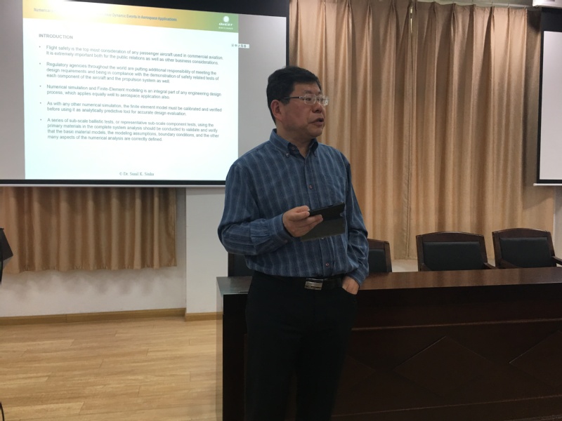 应tyc7111cc太阳成集团教授臧朝平邀请,俄亥俄州立大学辛哈教授于2019513日至15日访问我院,并为我院师生做了题为“Numerical simulation and Modeling of Nonlinear Dynamic Events in Aerospace Applications”的学术报告。报告在我院十号楼619学术报告厅进行,臧朝平主持了本次报告会,我院部分教师及硕博士研究生和本科生参加了本次学术报告。