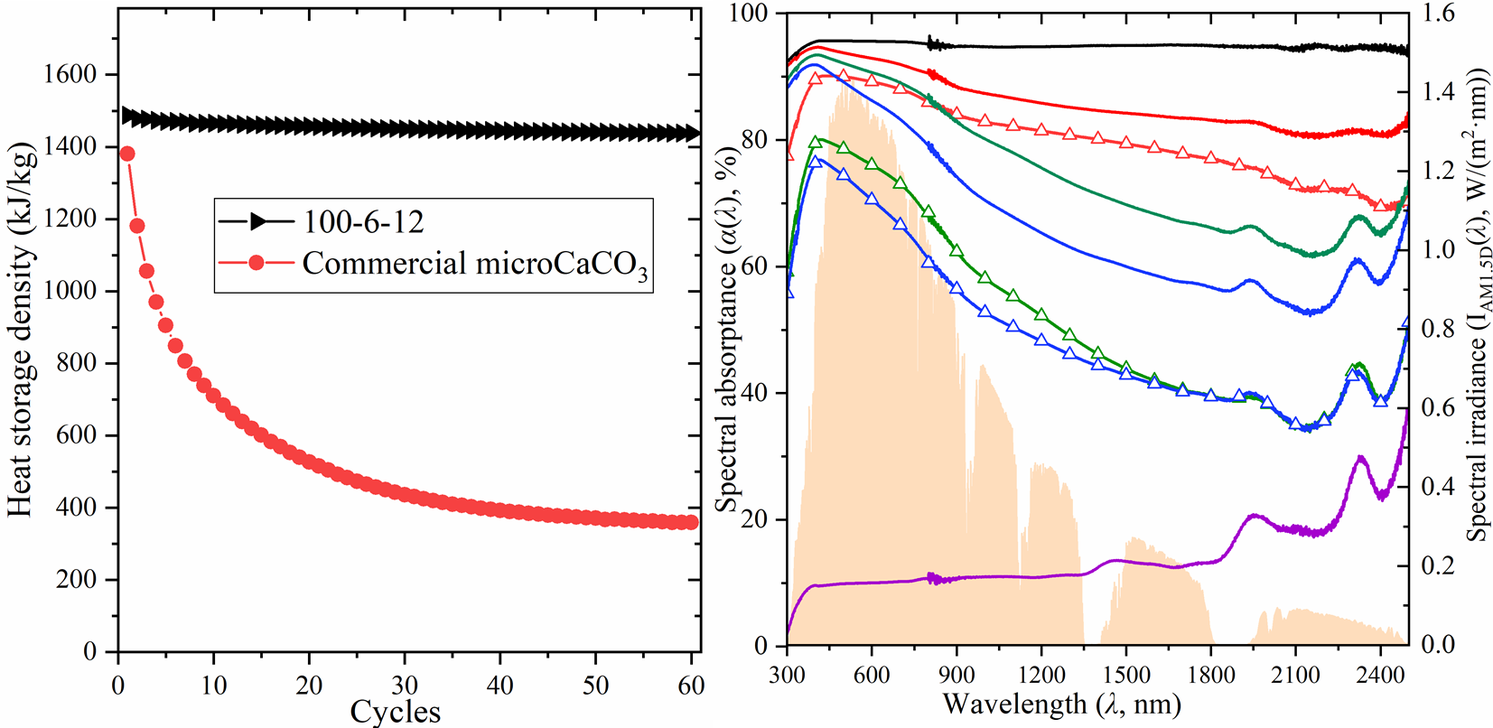 图2. 样品储释热循环性能和太阳光谱吸收特性