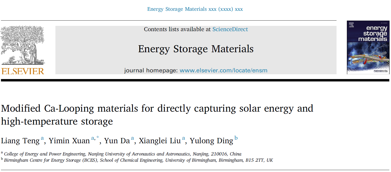 Modified Ca-Looping materials for directly capturing solar energy and high-temperature storage (http://elksslssl1230a75e822c6f3334851117f8769a30e1c.v.nuaa.edu.cn/10.1016/j.ensm.2019.09.006)