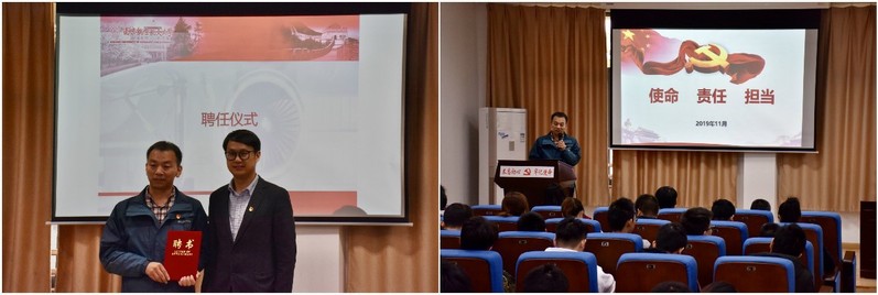 11月18日上午,在10号楼报告厅,任强围绕“责任、使命、担当”向师生党员代表,讲授“不忘初心、牢记使命”专题党课。授课前,王中叶为任强颁发“企业思想政治指导老师”聘任证书。任强结合亲身经历,讲述了作为技术保障人员用近半年的时间,保障国庆70周年阅兵现场飞机顺利飞过天安门广场的不为人知的幕后故事,引导党员理解航空报国的责任与使命,不忘航空情怀和报国誓言。