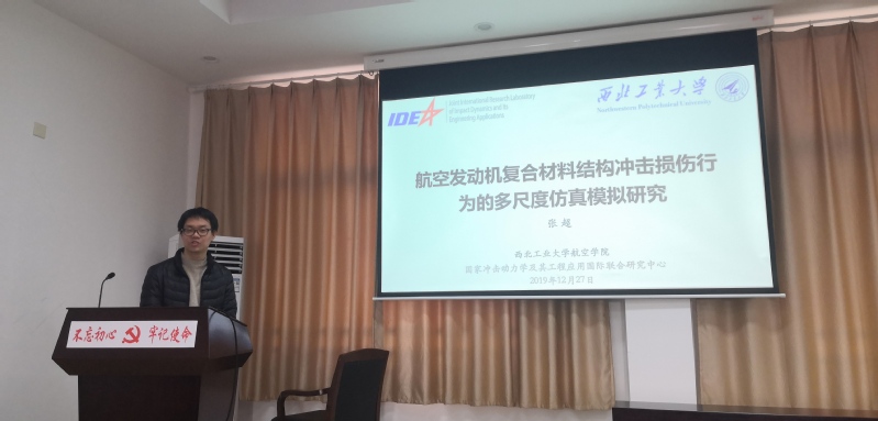 西北工业大学教授张超应邀于2019年12月27日访问我院,并为我院师生作了题为“航空发动机复合材料结构冲击损伤行为的多尺度仿真模拟研究”的学术报告。报告在我院A10号楼619学术报告厅进行,学院教授陈伟主持了本次报告会,我院部分教师和硕博士研究生50余人参加了本次学术报告。