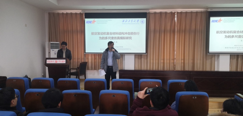 西北工业大学教授张超应邀于2019年12月27日访问我院,并为我院师生作了题为“航空发动机复合材料结构冲击损伤行为的多尺度仿真模拟研究”的学术报告。报告在我院A10号楼619学术报告厅进行,学院教授陈伟主持了本次报告会,我院部分教师和硕博士研究生50余人参加了本次学术报告。