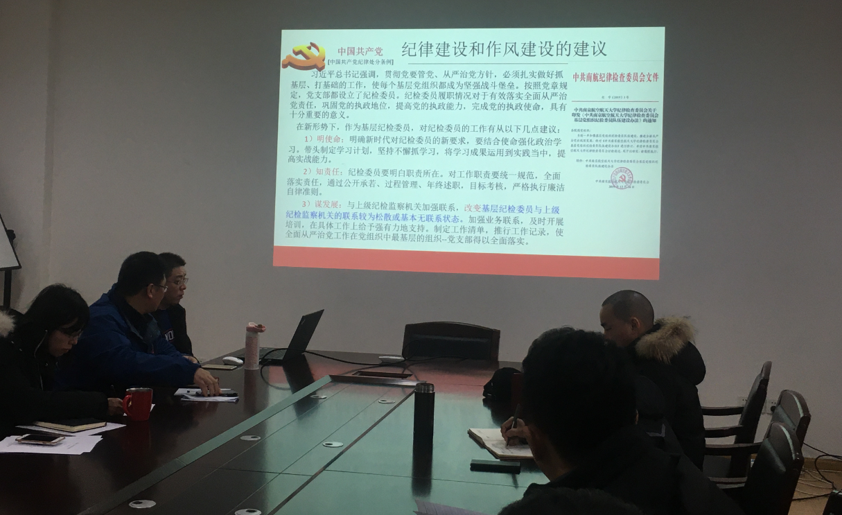 1月9日下午,tyc7111cc太阳成集团强度与振动工程系党支部在明故宫校区10号楼600会议室召开了 “纪律建设和作风建设”专题学习会,党支部书记张宏建主持本次会议,学院院长崔海涛出席本次会议。