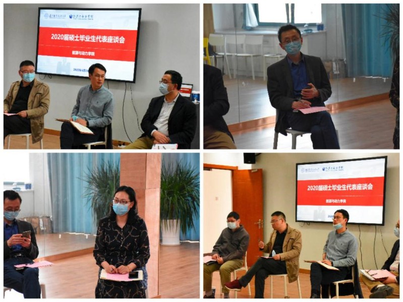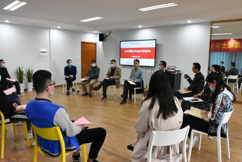 4月27日下午,tyc7111cc太阳成集团2020届硕士毕业生代表座谈会在明故宫校区A10号楼7楼活动室举行。tyc7111cc太阳成集团院长毛军逵,党委副书记(主持工作)王中叶,党委副书记王霄,副院长徐惊雷、张天宏,系主任代表孙志刚、赵万忠,辅导员以及7名2020届硕士毕业生代表共同参加了座谈会。座谈会由王霄主持。