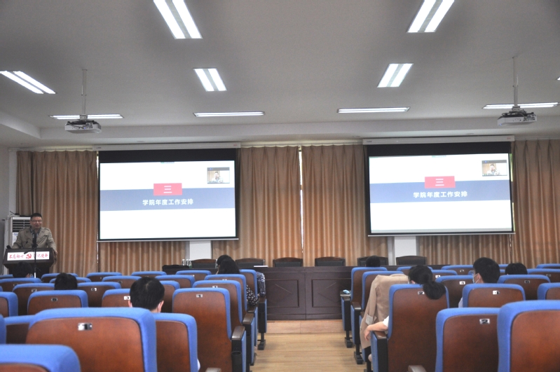 院长毛军逵感谢全体教职工在疫情期间为教学科研管理等工作正常开展所做出的巨大努力。他指出,2020年,面对学校新要求,要“抢抓机遇、齐心协力、内涵发展”,进一步提升学院治理能力,促进学院各项工作内涵式发展。他从学科平台等八个方面对学院年度工作重点进行了全面部署。他表示,2020年学院迎来新的起点、面对挑战机遇,全院上下要不忘初心,迎难而上,努力将二院建设成引以自豪的家园。