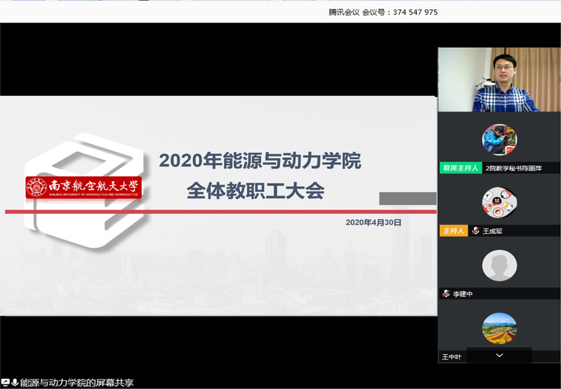 4月30日下午,我院召开新学期教职工大会,通报学院疫情防控工作情况,部署2020年学院全面从严治党工作及年度工作安排,会议首次采用视频会议形式开展。院领导、院长助理、系主任、支部书记、院机关同志在主会场参会,其他教职工通过腾讯会议线上参会。会议由院党委副书记(主持工作)王中叶主持。