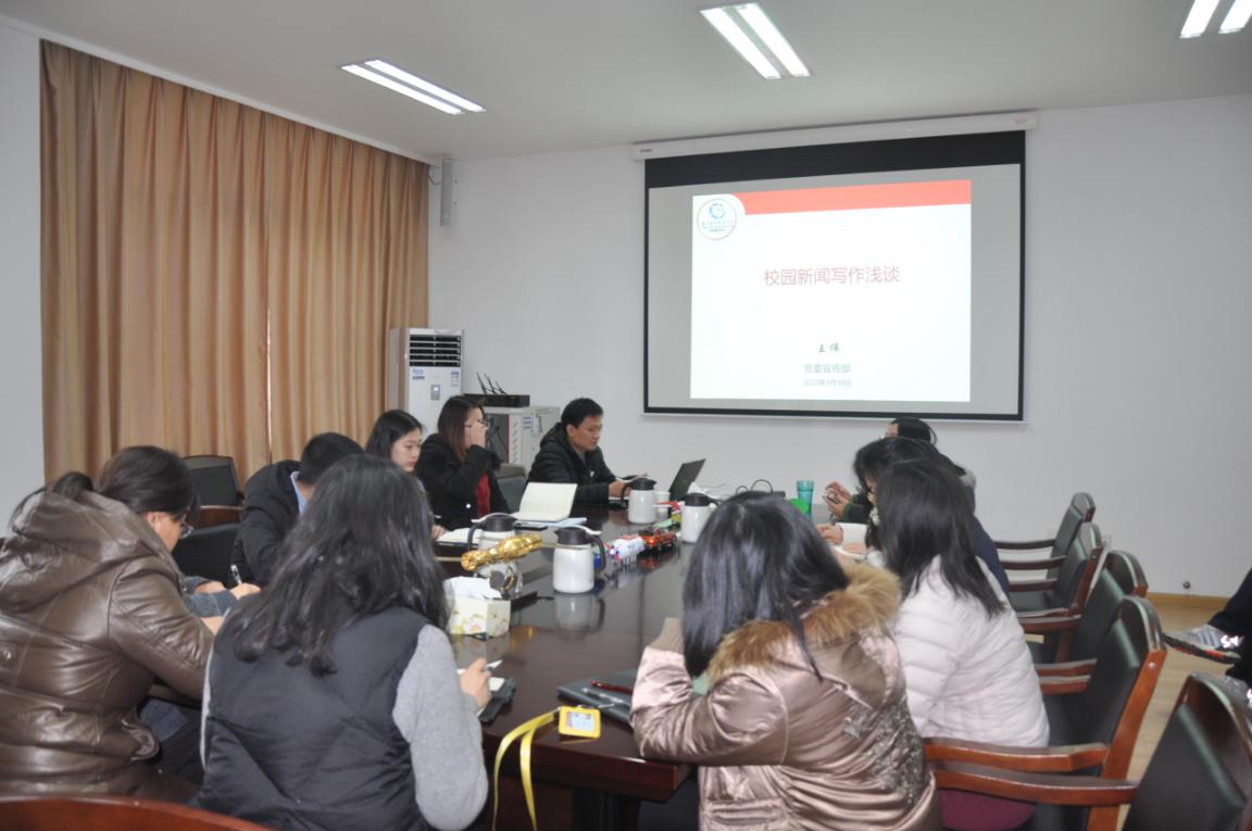 1月18日上午,校党委宣传部新闻中心副主任王伟走进tyc7111cc太阳成集团,面向学院新闻宣传工作者开展校园新闻写作培训。