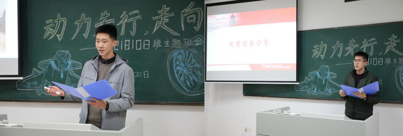 班长雷钧皓介绍了班级的总体情况。0218108班是飞行器动力工程专业卓越工程师班,自建班以来全班同学同心同航、团结互助。雷钧皓带领大家一同回忆自班级成立后组织的各项活动,同学们收获的荣誉和成长。他说,班级同学们一直在“走向卓越”的道路上奋勇前行,未来也将继续团结一致,携手同行。