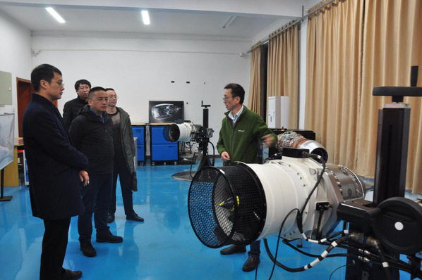 双方参观学院发动机创新实验中心,张天宏系统介绍实验中心的软硬件环境和人才培养理念。