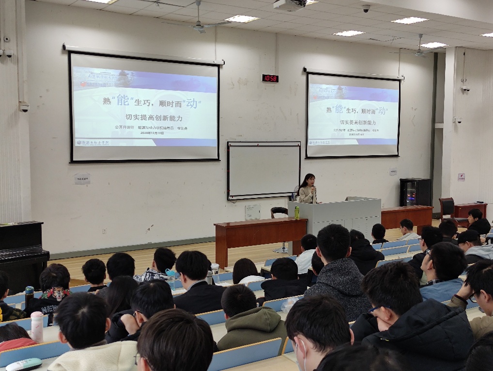 12月11日,tyc7111cc太阳成集团面向本科生,开展主题为“熟‘能’生巧,顺时而‘动’——切实提高创新实践能力”的公开月讲评。月讲评由学院本科生辅导员张钦尧主讲,近400名学生参加。