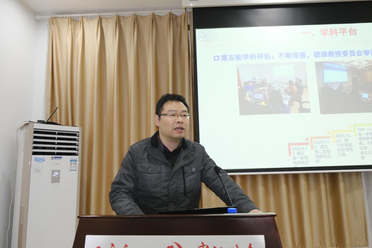 院长毛军逵向全院老师一年来的努力和付出表示感谢。他代表学院班子从学科平台、师资队伍、人才培养、科学研究、太阳成集团、学生工作六个方面作行政工作述职,全方位展示学院在本年度取得的突出成绩。2020年,院领导班子团结带领全院师生笃行致远,传承创新,各项工作在平稳、有序、扎实中不断推进。2021年,学院将上下团结一心,赓续初心聚合力,接续奋进再前进。
