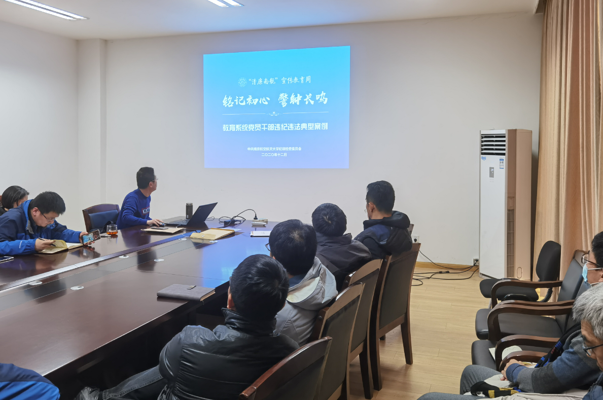 随后,支部纪委委员漆文凯讲授了《教育系统党员干部违纪违法典型案例--清廉南航宣传教育周》专题党课,他通过领学违反中央八项规定精神及廉洁纪律的典型案例,重点针对招生、采购、基建等重点领域违纪违法典型案例及其他侵害师生利益的微腐败典型案例进行了讲解,对典型案例发生的原因进行了剖析,以案明纪。通过党课学习,全体党员表示,要合理合法合规使用课题经费开展教学科研活动,经费使用警钟长鸣,不越红线,不违法违规。