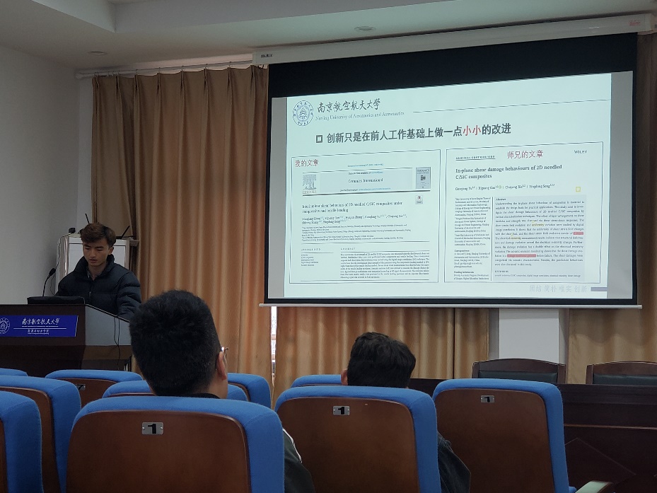 强度与振动工程系的张悦(签约航天科工集团三十一所)从招聘信息获取、简历制作、面试经验和企业推荐四个方面进行了分享。他强调除了从网上获取招聘信息以外,还可以向已就业的师兄师姐和导师进行就业询问。在面试经验上,他重点提到了要发挥我们做项目的优势,将项目和目标单位联系起来介绍自己,这样更加能够突出自己专业相关性和优势。
