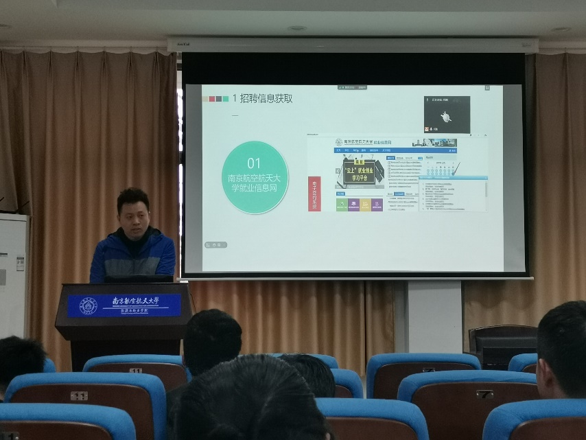 来自控制工程系的缪荣成(签约了中航工业航空动力控制系统614研究所)。他首先就强调了选择大于努力,如果没有选择好自己的就业目标,往往会准备不足、错失良机。缪学长着重讲了实习在读研期间的重要作用,一个好的实习项目往往对今后找工作会起到事半功倍的效果。