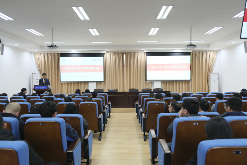 3月19日下午,学院在10号楼619报告厅召开2020-2021学年第二学期全院大会,部署新学期工作,全体院领导及教职工参会。会议由院党委书记王中叶主持。