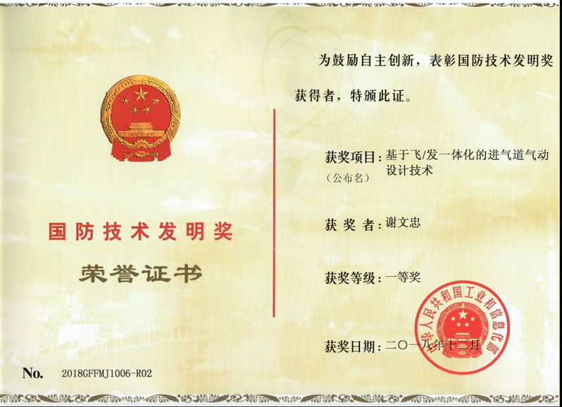 秉持工程应用和基础研究并重的学术理念,通过多年努力,谢文忠在自己的领域取得了不少成绩。他探明蛇形进气道内通道二次流的涡动力学形成、二次流与边界层堆积以及气流分离之间的关联机制,揭示了基于涡控方法的边界层分离抑制机理,提出了大弯曲扩压器涡控设计方法。他还揭示了隐身进气道地面工作状态下口面旋涡与内通道旋涡流动之间的耦合机理,提出了隐身进气道口面与内通道旋涡一体化控制方法。