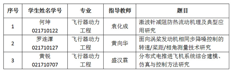 根据教育部《关于举办全国高校航空航天类专业本科毕业设计成果交流会的通知》,以自愿报名、择优推荐为原则,经学生个人申请、毕设指导教师推荐、院级答辩等方式,学院拟推荐3项毕业设计项目参加全国高校航空航天类专业本科毕业设计成果交流会项目的评选,现予以公示,名单如下:
