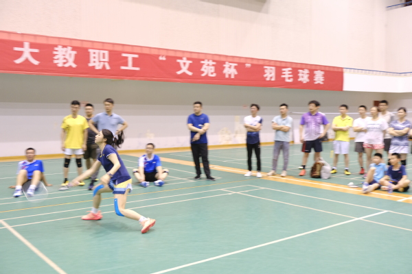 决赛时,几乎所有观众的目光都聚焦到了决赛比赛场地。决赛中,学院对战传统强队继续教育学院。第一场男子单打由王龙飞出战,王龙飞凭借快捷、杀球准狠的优势,获得第一小节胜利;第二小节开始,对手郑骏精准控球的优势彰显,他快拉快吊,前后切换,王龙飞前后场来回拉球,体力消耗巨大;第二、三小节郑骏利用控球优势拉扯,逐渐拉开差距,最终拿下男子单打的胜利。重担落在女子单打队员谷雅雯身上,她打出优势拿下第一节比赛,后因对手旧伤复发无法继续比赛,女子单打直接得一分。最后,贾旭和张寒上阵混合双打,贾旭实力出众,和张寒配合完美,英姿飒爽,拿下最后一局的胜利,我院以2:1获得冠军。
