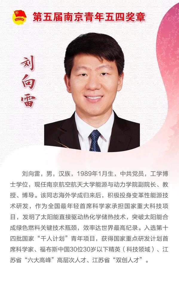 综合能源研究院执行院长刘向雷教授荣获第五届“南京青年五四奖章”。