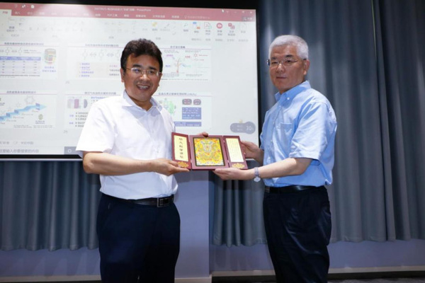 报告会后,宣益民院士代表学校向陈军院士赠送“问天科学讲坛”纪念云锦,以表达对陈院士此次来学校开展访问讲学活动的衷心感谢。