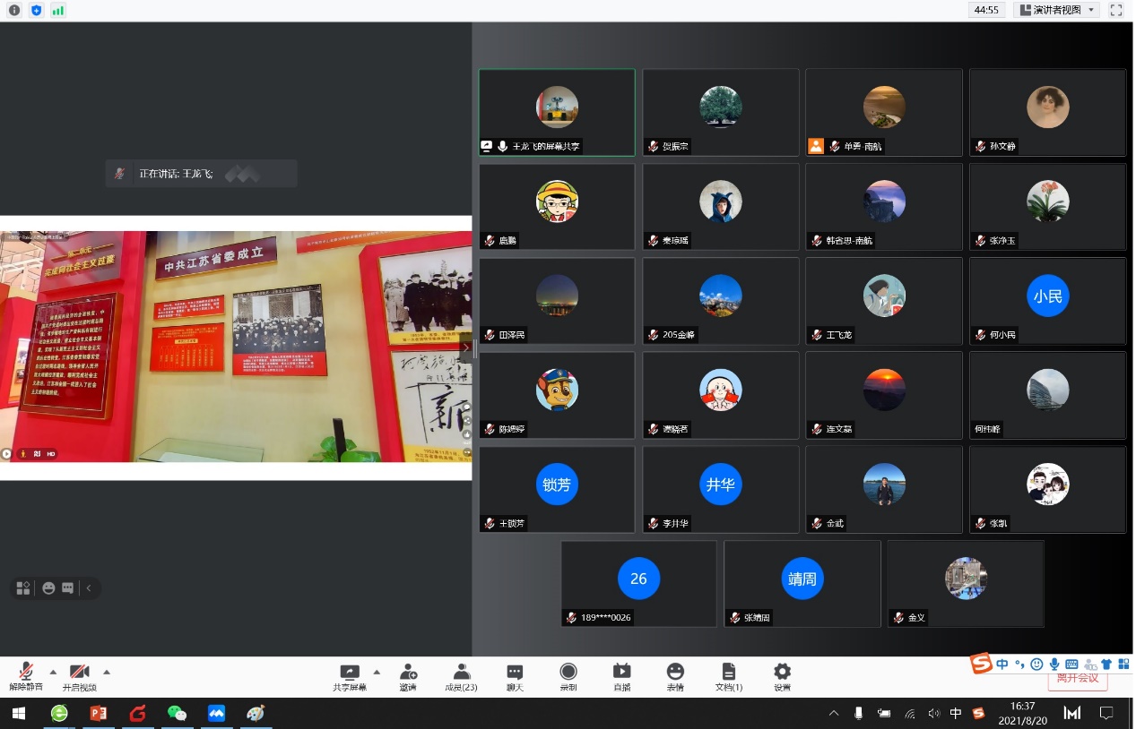 在南京遭遇新一轮新冠疫情影响下,燃烧传热与热能系党支部全体党员响应国家和学校号召,每日打卡报平安,居家办公不停歇。与此同时,党支部线持续推动党史学习教育,近日开展线上学习中国共产党在江苏历史展网上展馆活动。此次学习活动由党支部书记张净玉主持,全体支部党员参与学习。