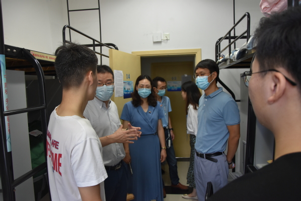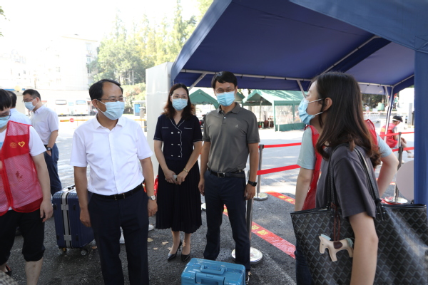 在明故宫校区,校长单忠德院士、副校长姜斌教授、学校党政办、研究生院的领导、老师看望了明故宫校区西大门和B16栋宿舍办理入校报到的研究生新生,与新生亲切交流。