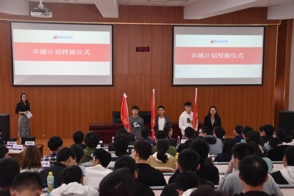典礼最后,王霄分别为2020级飞行器动力工程卓越班、0220203及0220303三个卓越工程师班授旗。